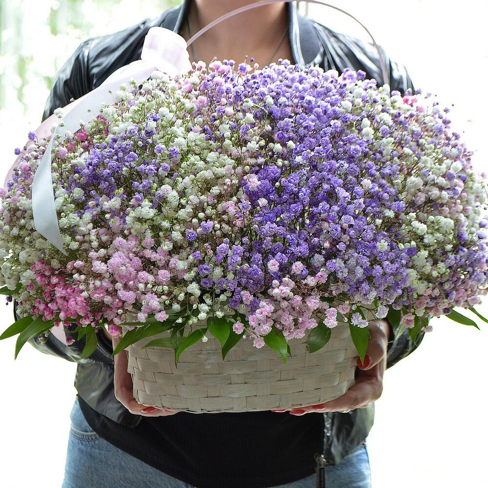 Гипсофила цветная в корзине 15 веточек