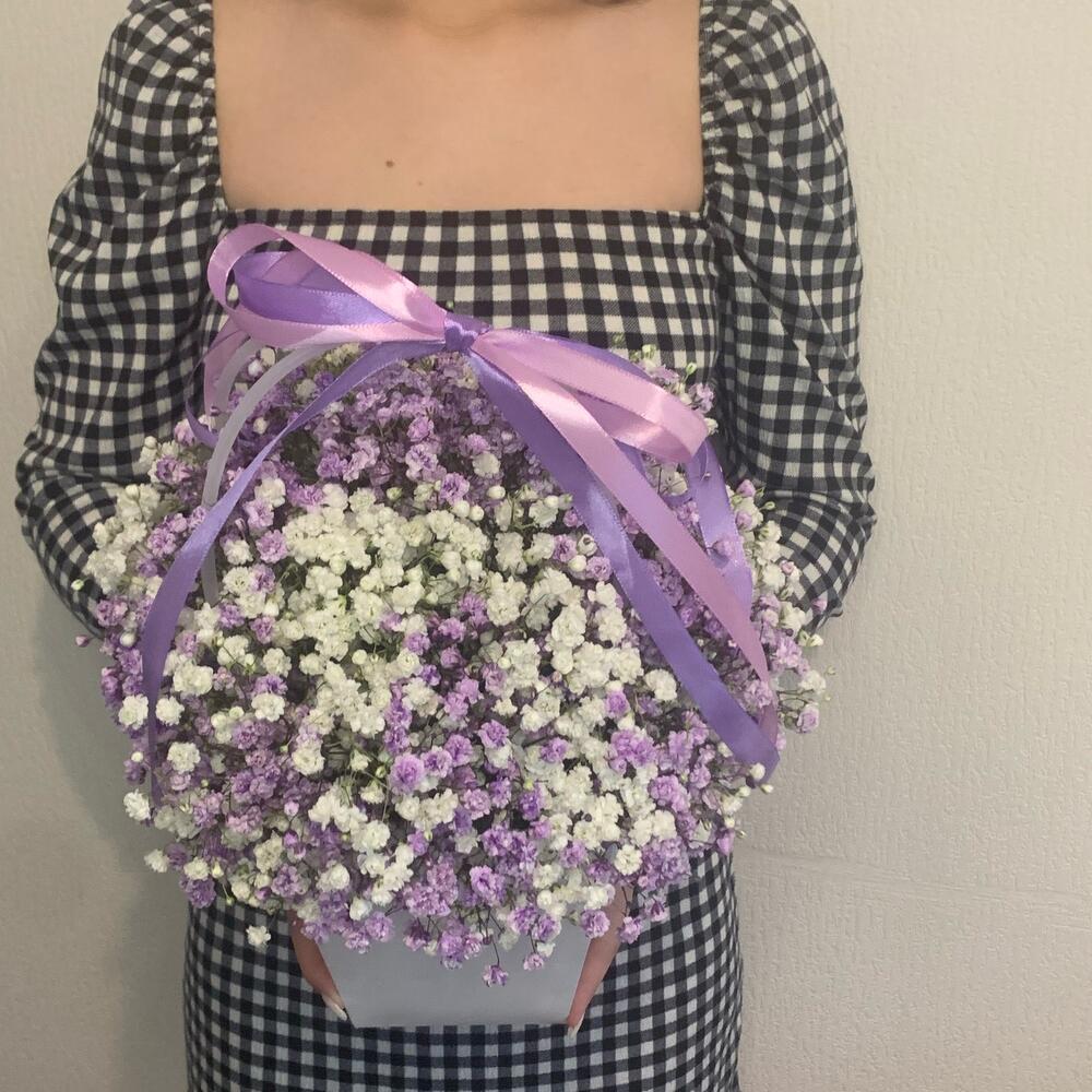 “Сиреневый туман” – композиция из гипсофилы в шляпной коробке