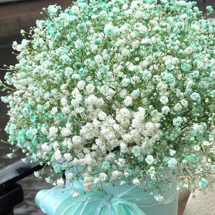 “Сиреневый туман” – композиция из гипсофилы в шляпной коробке