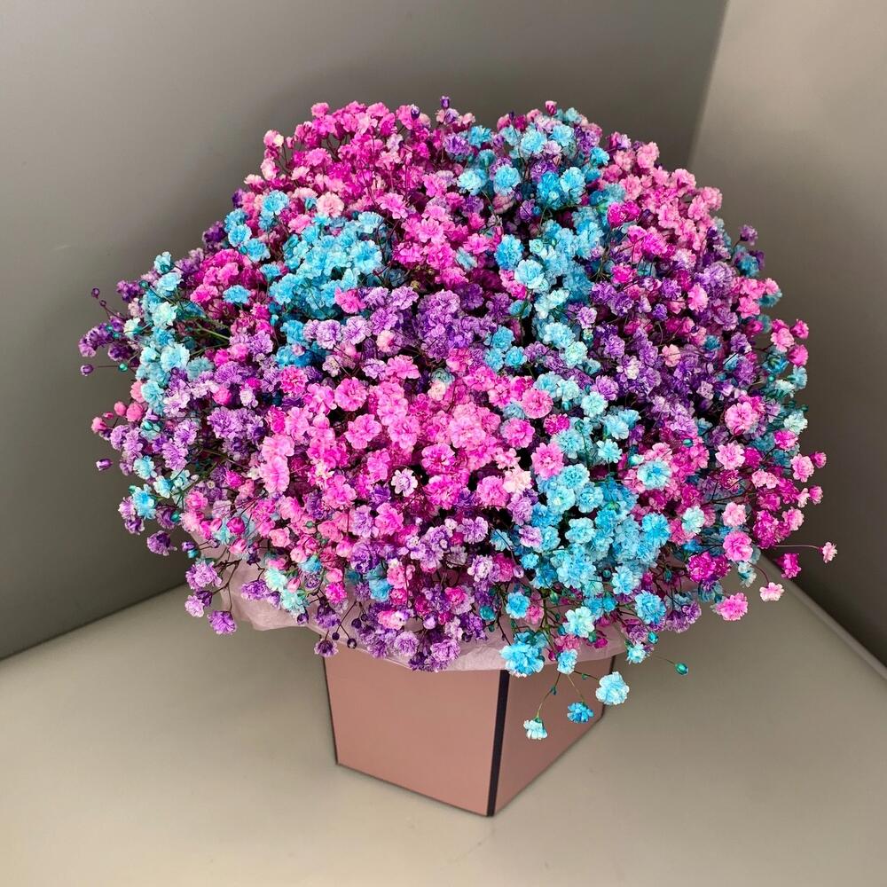 Радужная Гипсофила в розовой коробке