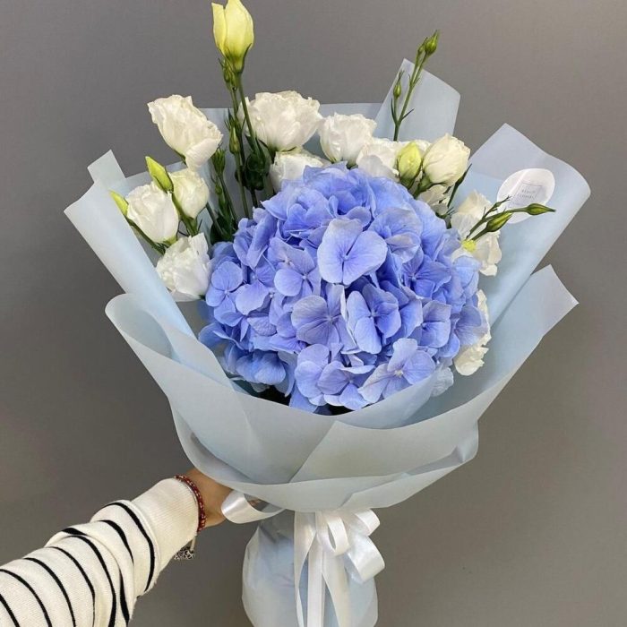 Гортензия – 1 шт. Эустома – 3 шт. Упаковка дизайнерская – 1 шт.