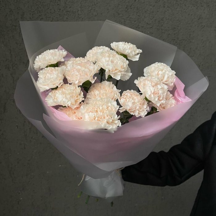 Букет 25: монобукет из кремовых гвоздик