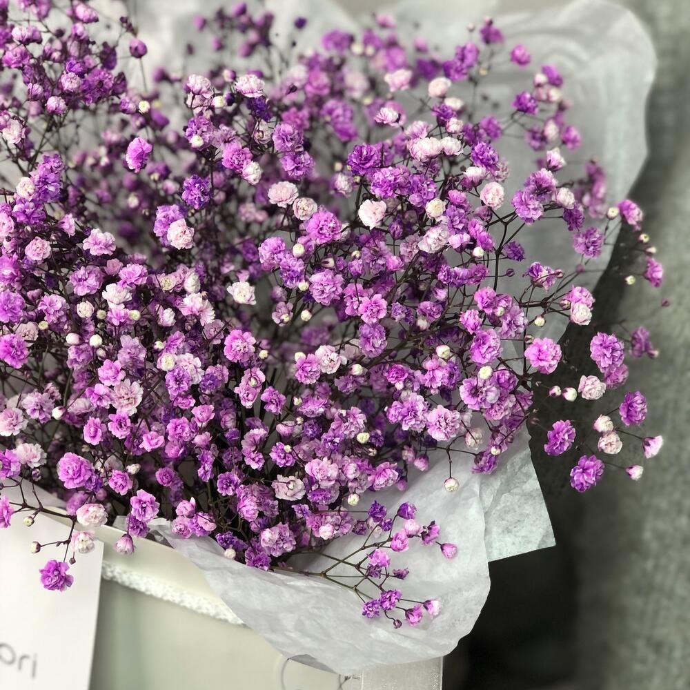 «Лавандовое созвездие» Букет из розы, гвоздики, статица и хлопка
