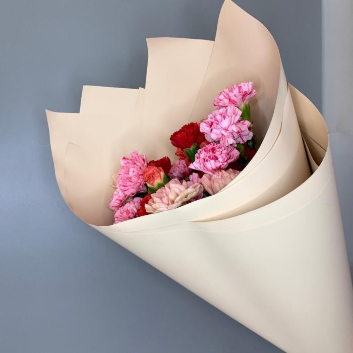 Букет из 51 диантуса (гвоздики) микс в стильной упаковке