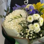 Букет с ромашками и ирисами