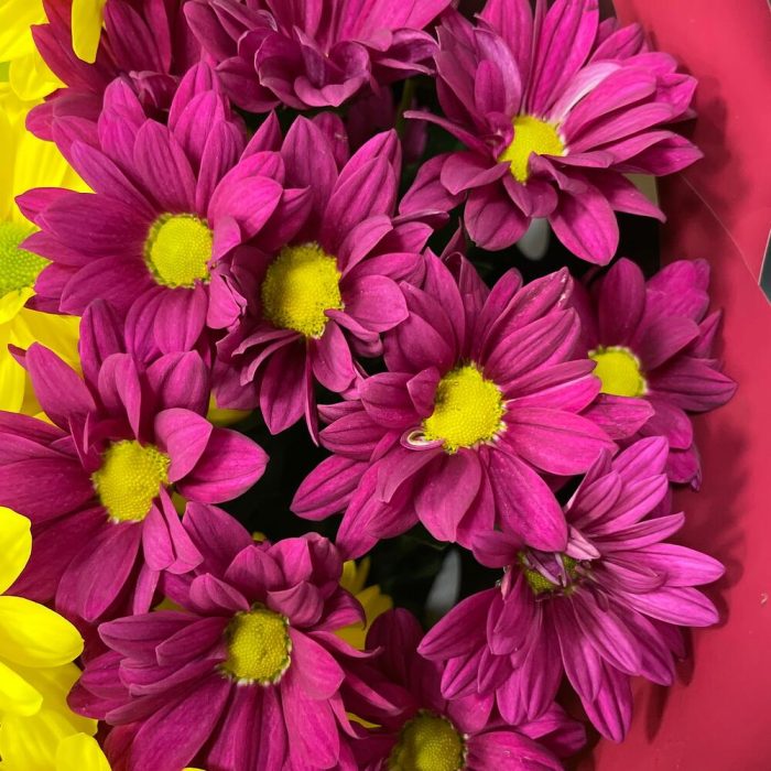 Хризантема – 7 шт.Упаковка – 2 шт.Лента атласная – 1 шт.