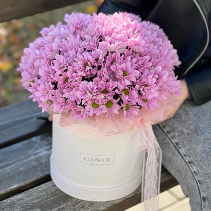 Хризантема – 13 шт. Коробка – 1 шт. Оазис – 2 шт.