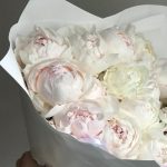Лента – 3 шт.Пион белый – 15 шт.Упаковка дизайнерская – 5 шт.