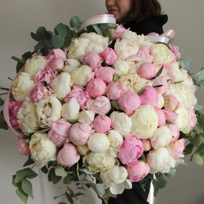 Creamy – огромный букет из пионов и эвкалипта
