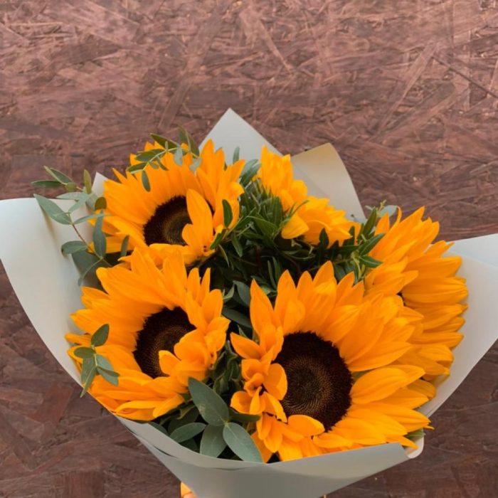 Подсолнух – 5 шт.Эвкалипт – 3 шт.Упаковка дизайнерская – 2 шт.
