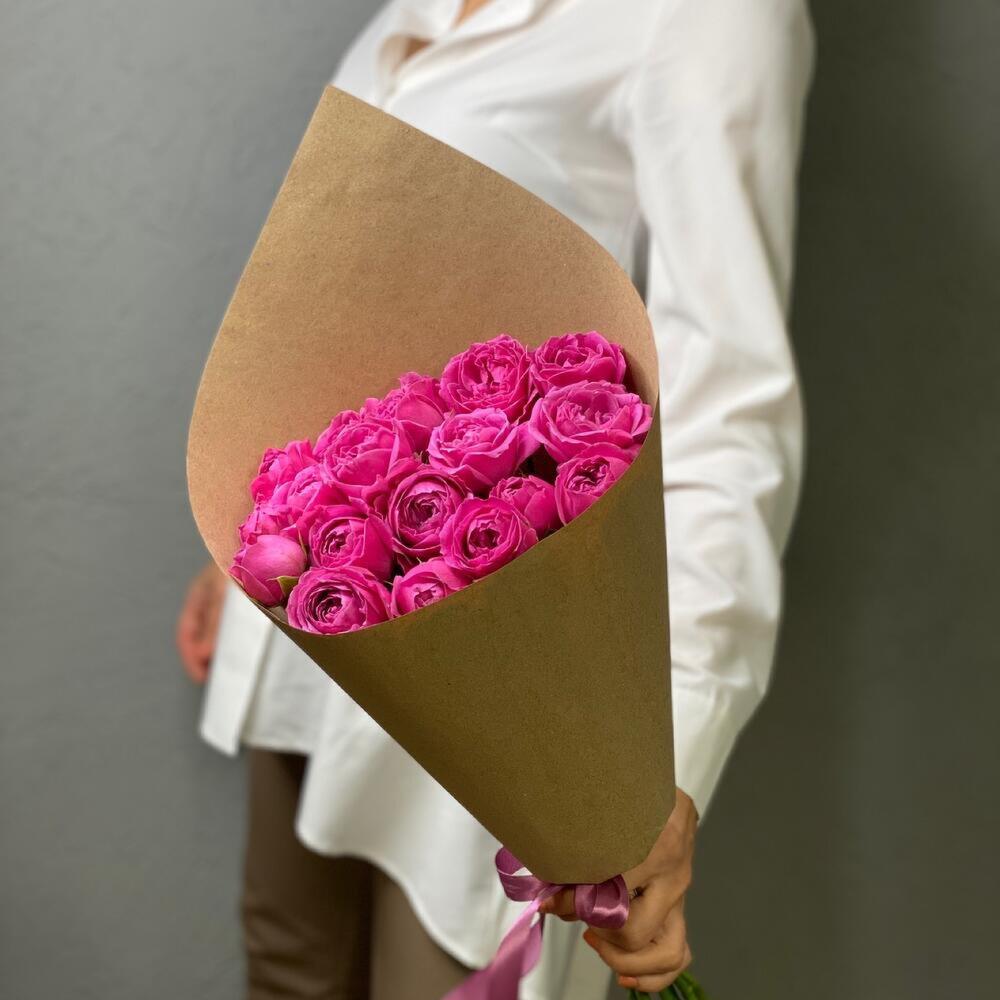 Пионовидные кустовые розы , сорт Мисти Баблс в крафт упаковке