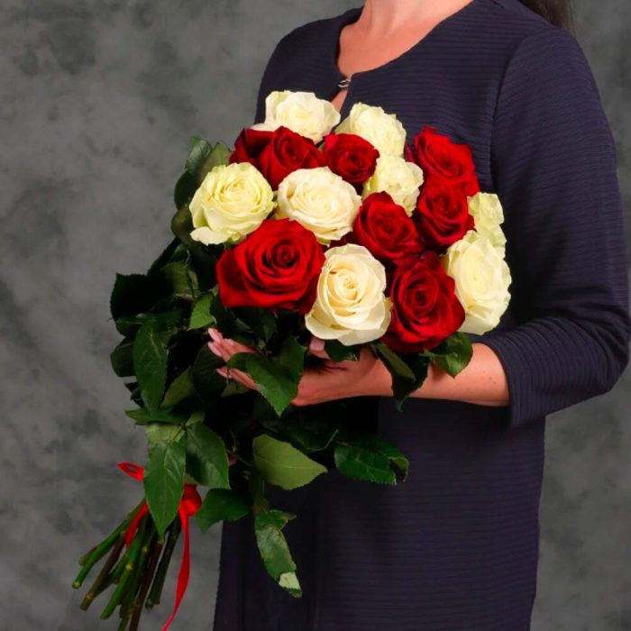 Метки: 15 роз, от 5000 руб, Роза 80 см