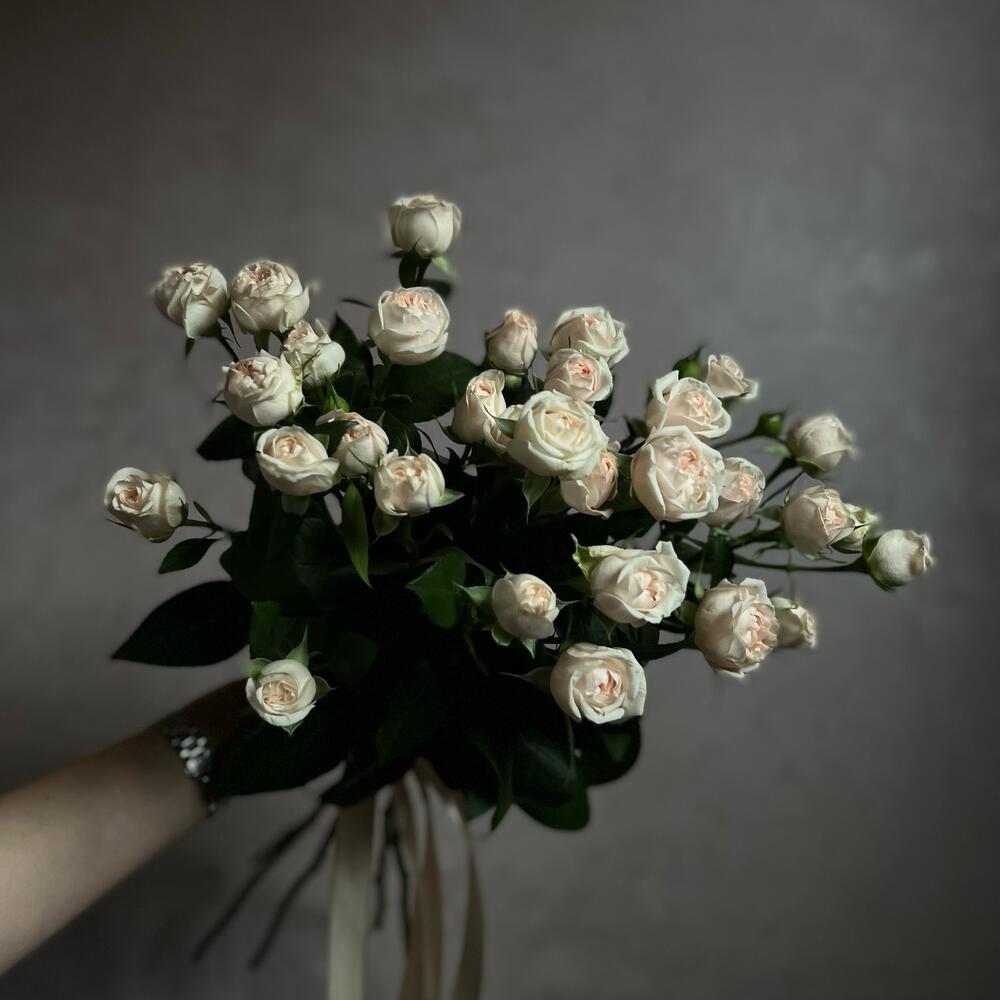Роза кустовая – 5 шт.Атласная лента – 1 шт.