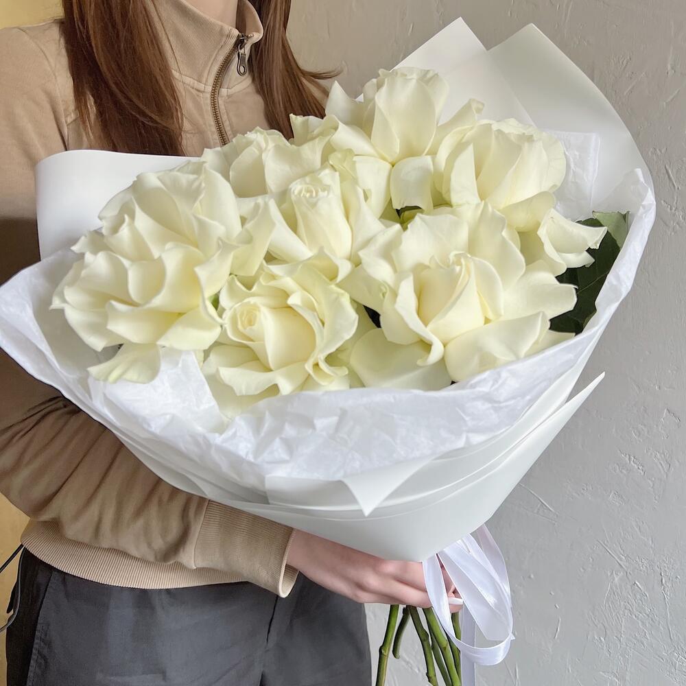 Лента атласная – 2 шт.Упаковка дизайнерская – 2 шт.Французская роза – 7 шт.Упаковка тишью – 2 шт.