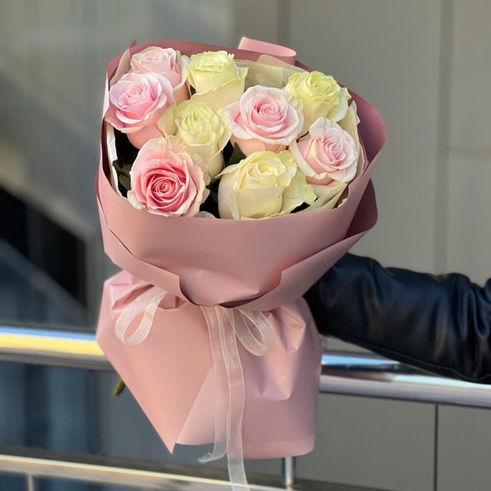 Роза одноголовая – 9 шт. Оформление – 1 шт.