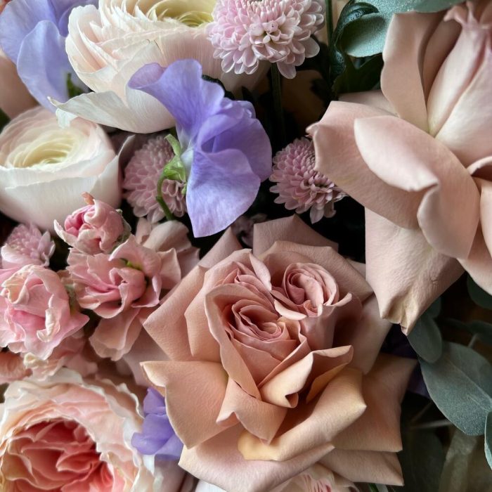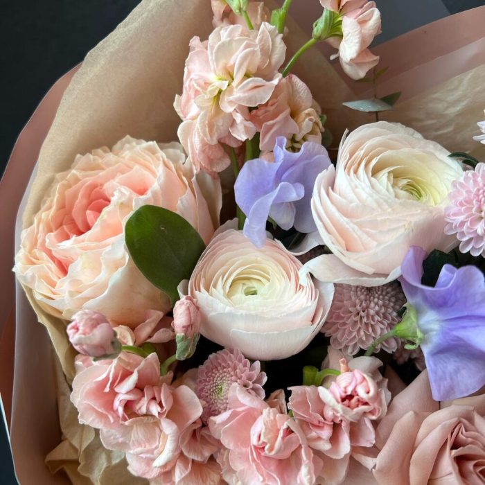 Букет из Пионовидный роз, Ранункулюсов и ароматных цветов