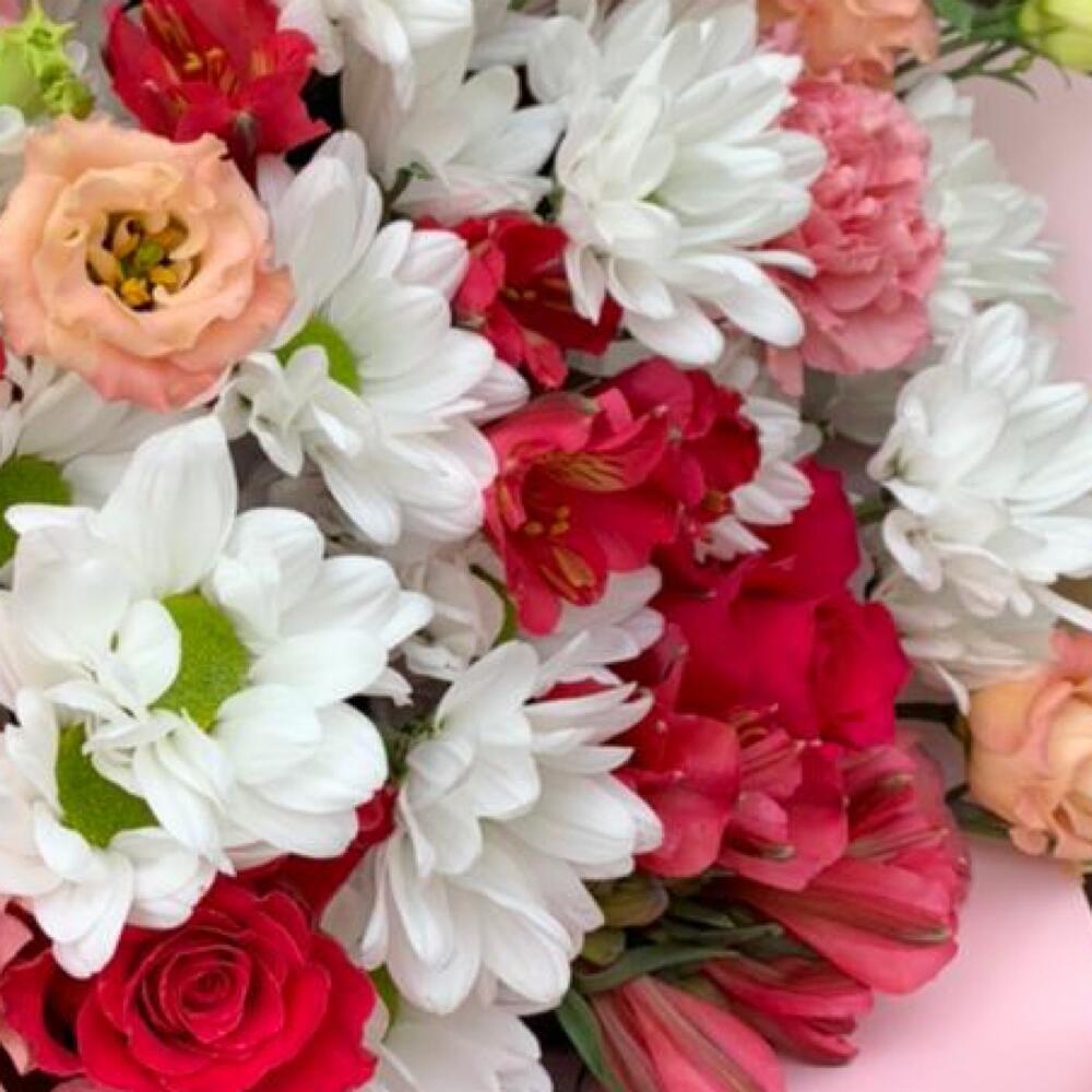 Категорий: Альстромерии, Гвоздики, Кустовые розы, Лизиантусы, Розы, Хризантемы