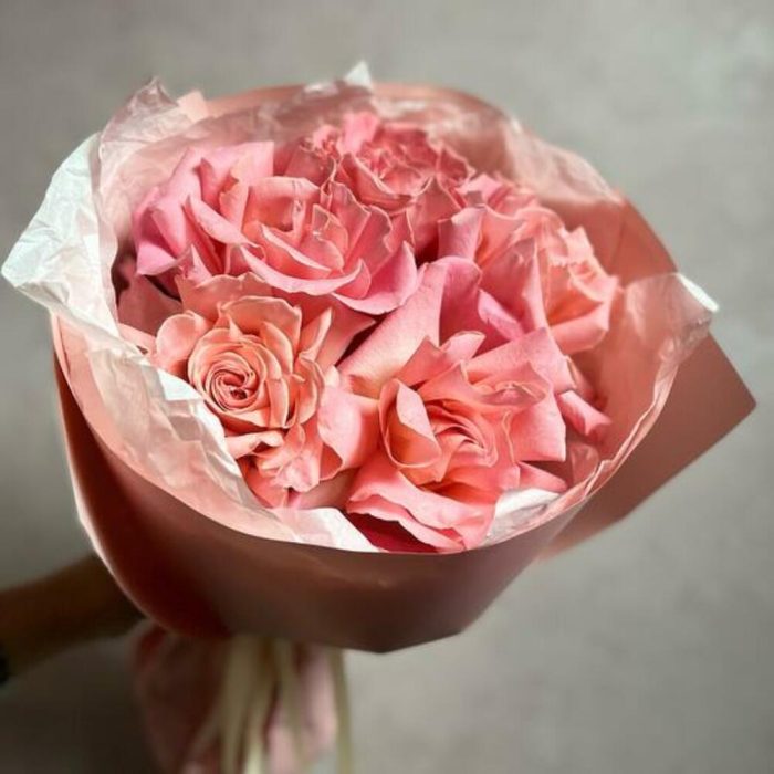 Одноголовая роза – 5 шт.декоративная упаковка – 1 шт.Атласная лента – 1 шт.