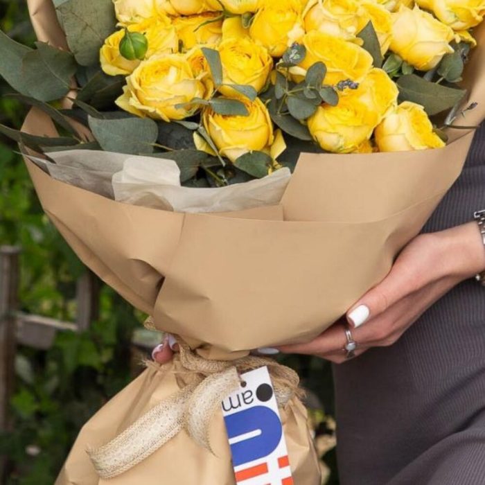 Эвкалипт – 5 шт. Кустовая роза – 10 шт.