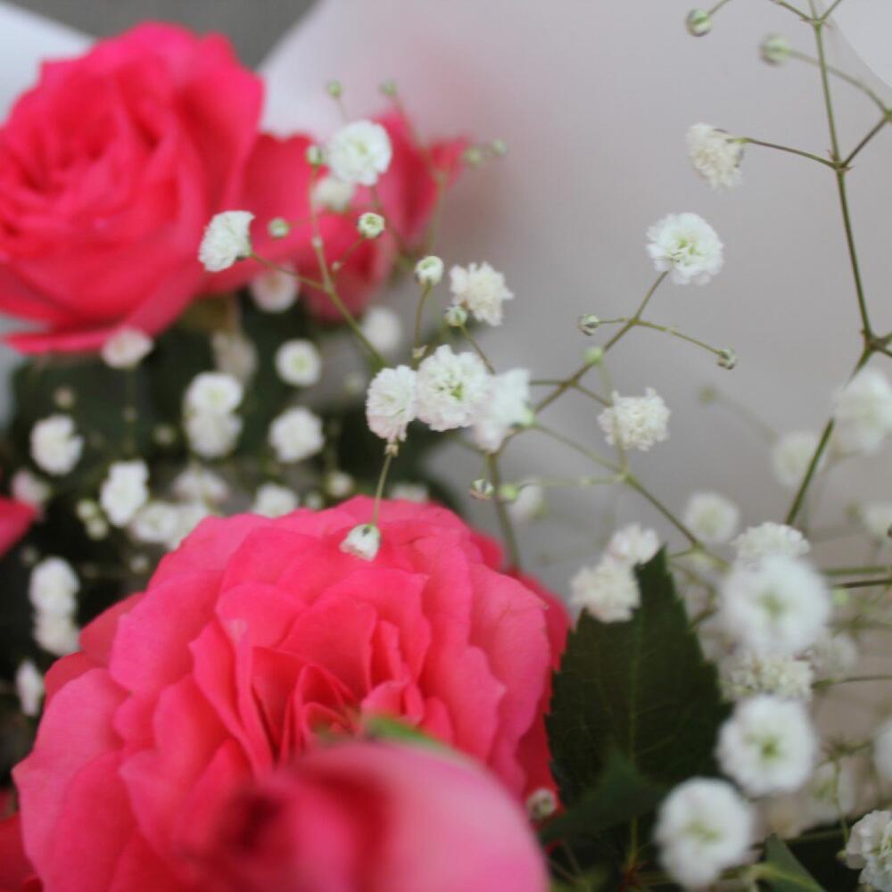 Упаковка дизайнерская – 1 шт.роза кустовая премиум – 3 шт.веточка гипсофилы – 1 шт.