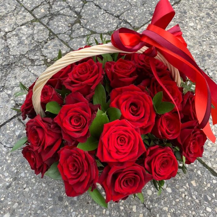 Корзина из 25 красных роз