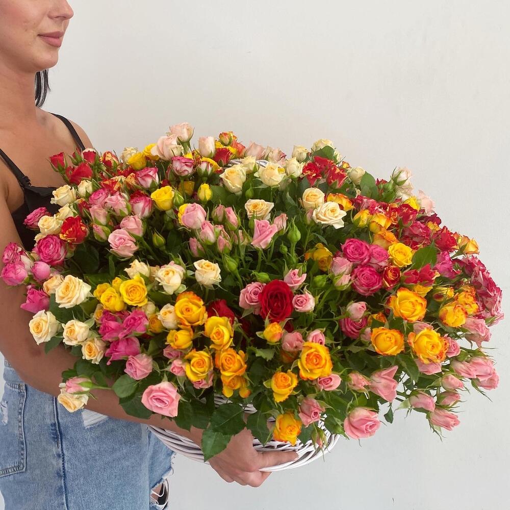 Корзина с кустовыми розами