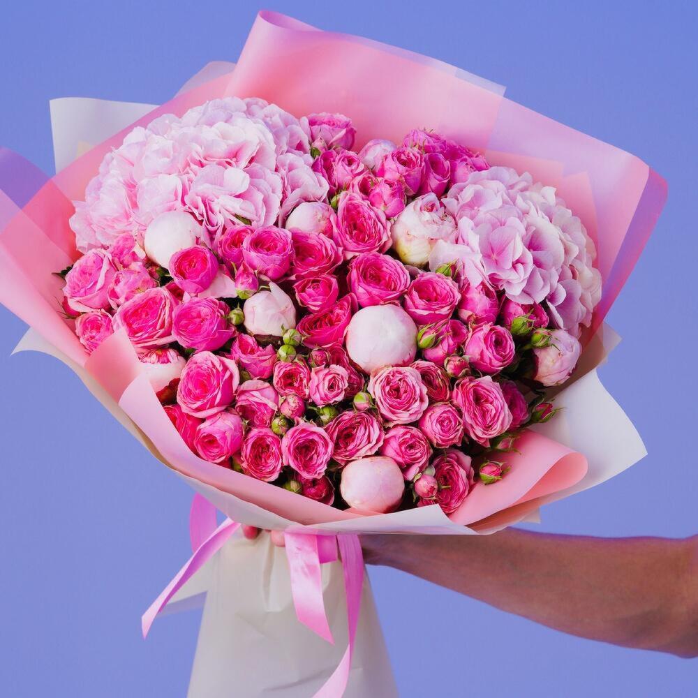 Категории: Гортензии, Кустовые розы, Пионовидные розы, Розы