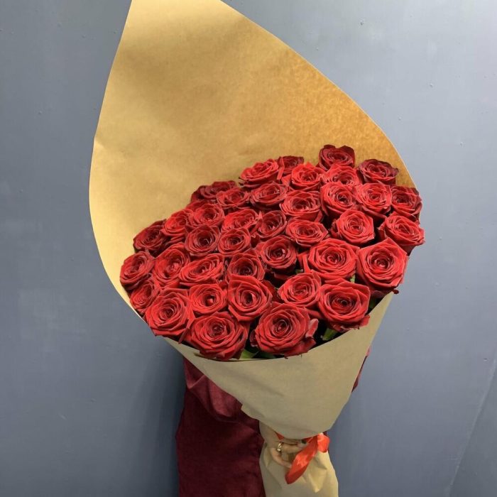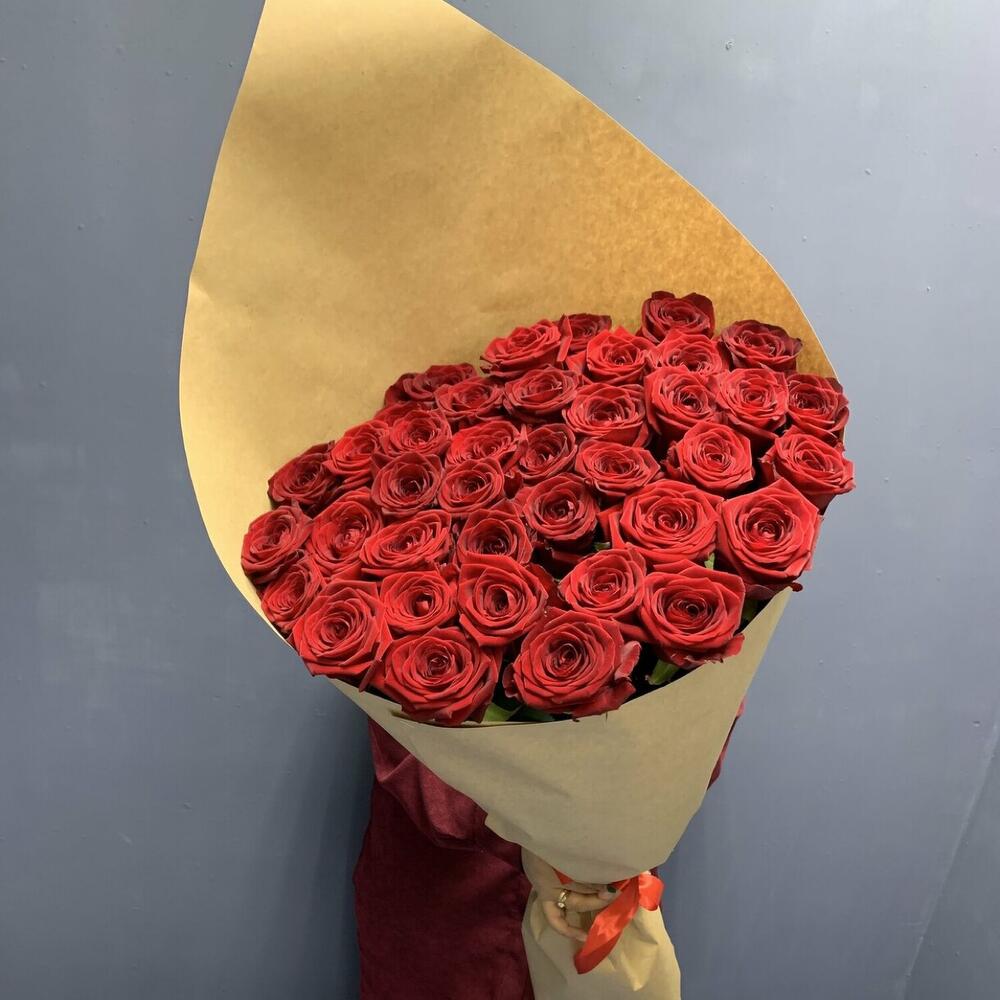 розы эквадор 80 см – 35 шт.Крафт упаковка – 2 шт.Лента атласная – 1 шт.