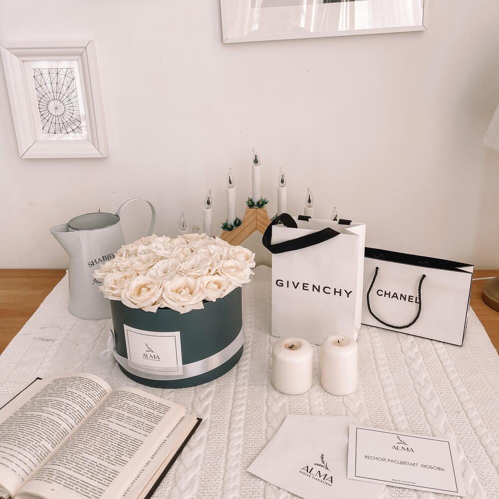 "В твоих глазах": нежная шляпная коробка с французскими розами