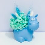 гортензия стабилизированная бирюзовая – 1 шт.лагурус (сухоцвет) бирюзовый – 2 шт.лагурус (сухоцвет) белый – 2 шт.пшеница (сухоцвет) бирюзовая – 2 шт.декоративные элементы – 1 шт.кашпо керамическое бегемотик – 1 шт.