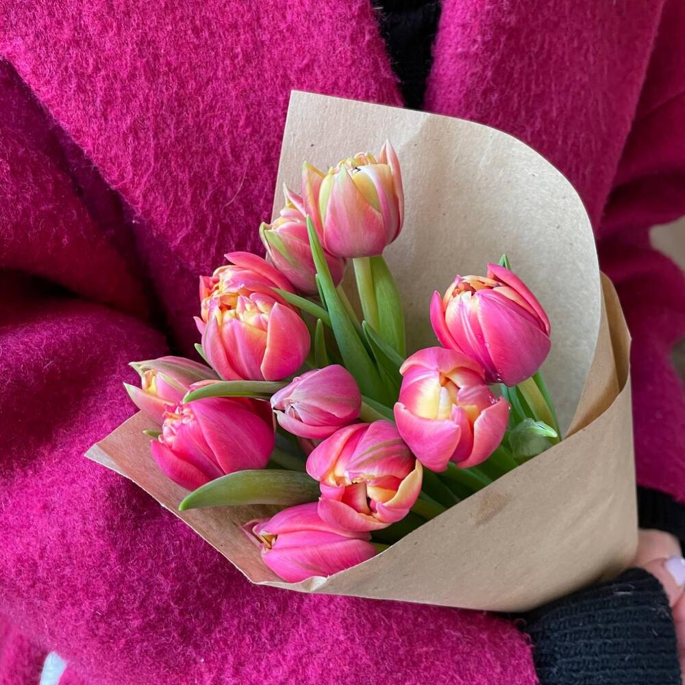 Крафтовая упаковка – 1 шт.Розовый пионовидный тюльпан – 11 шт.