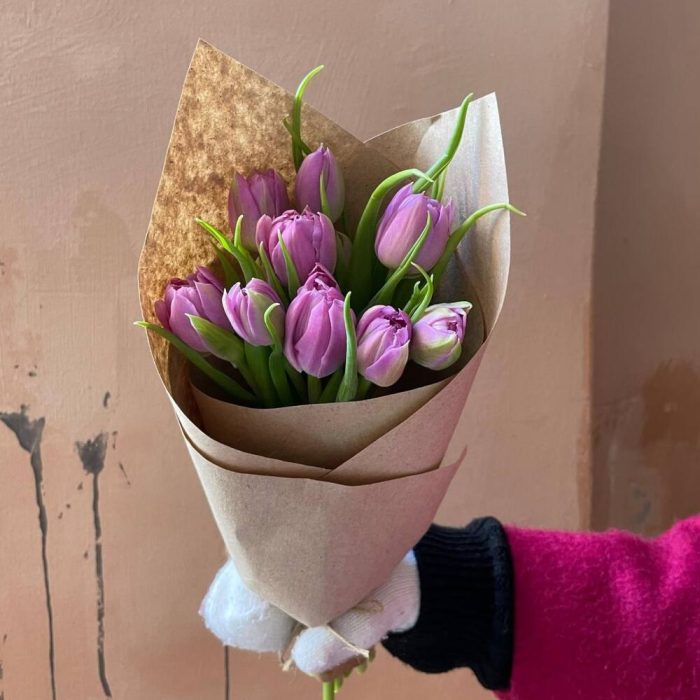 Крафтовая упаковка – 1 шт.сиреневый пионовидный тюльпан – 11 шт.